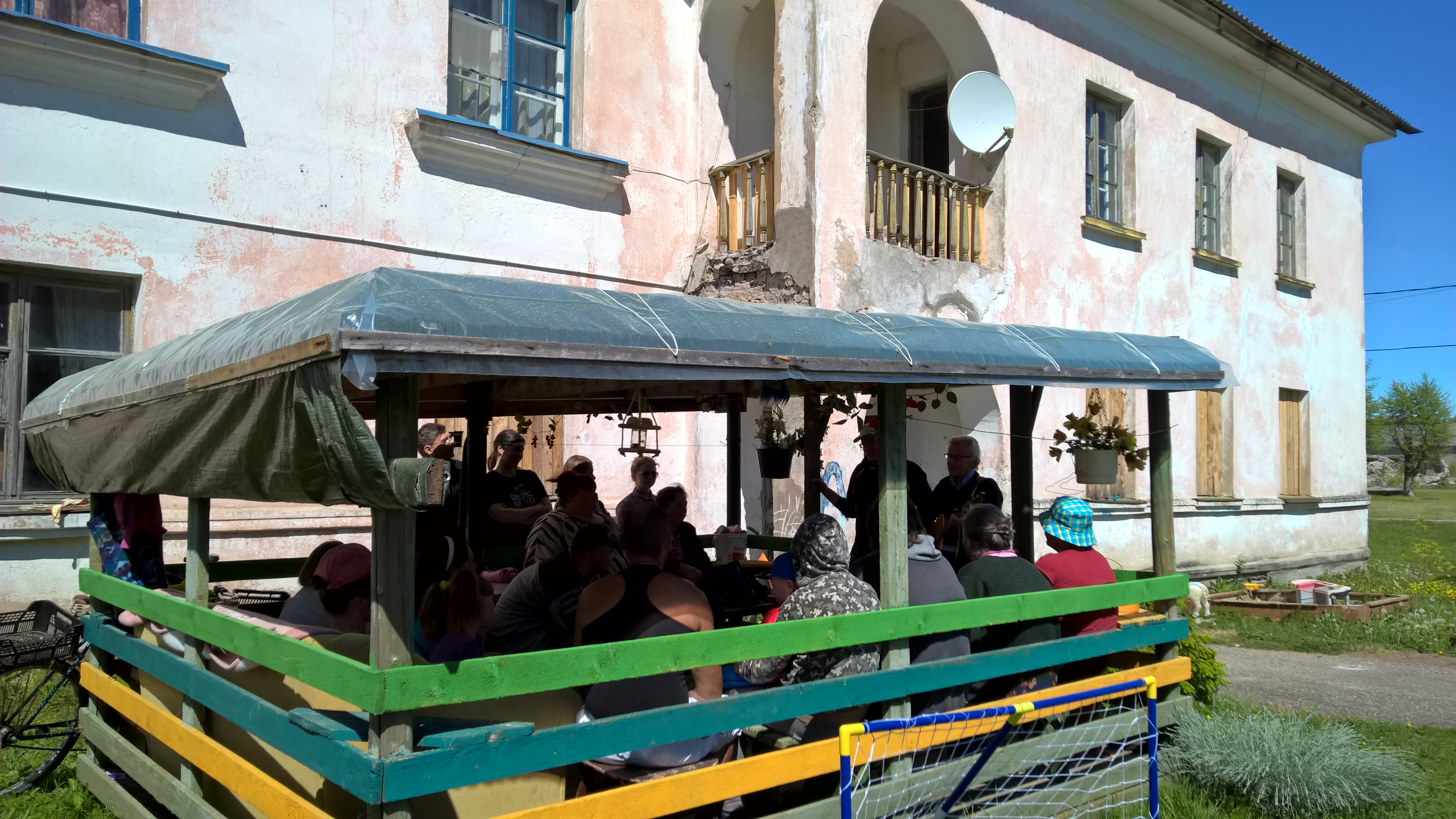 Sillamäe, kerrostalon kivijalassa, talossa 500 asukasta. Talon seurakunnanjäsenet kuvassa |
